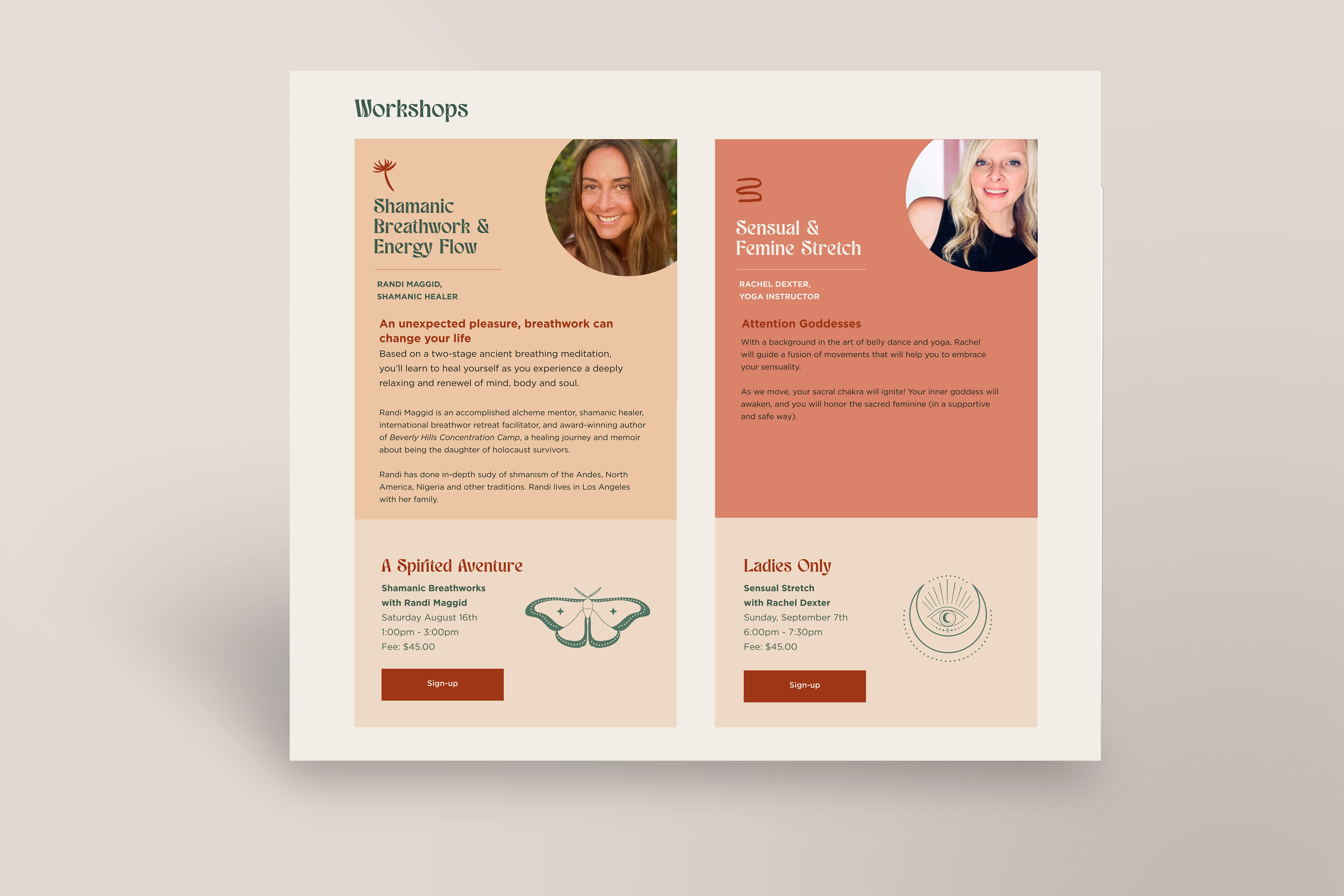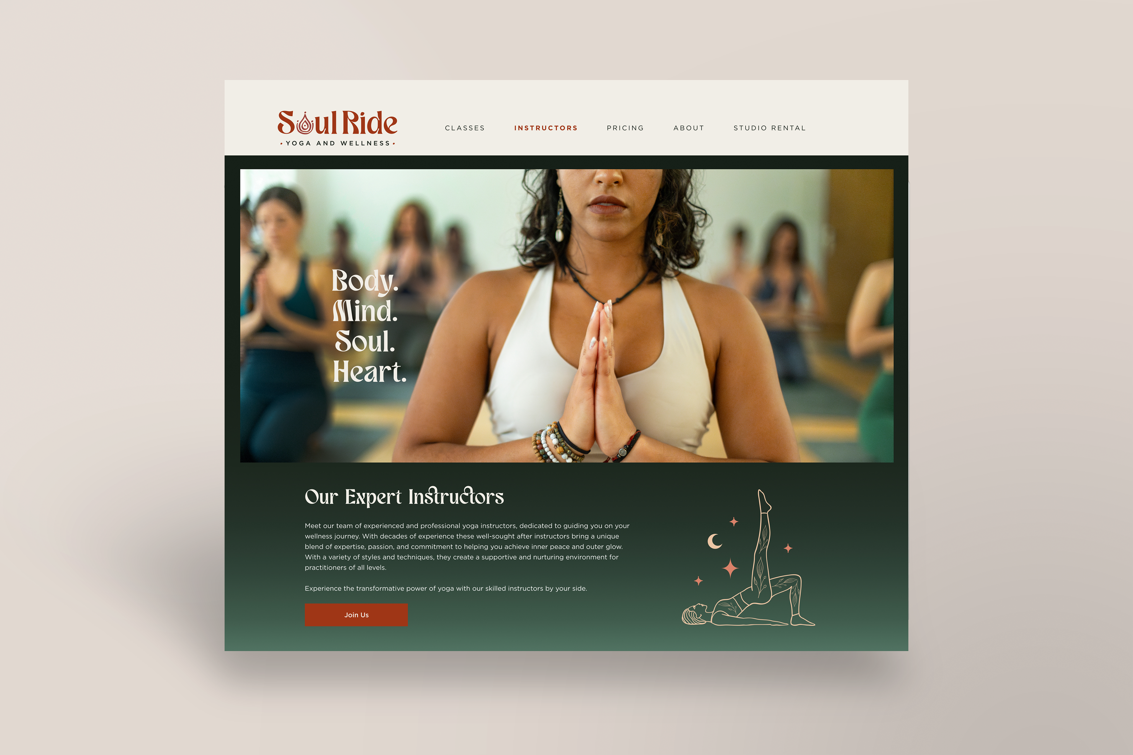 I created a holistic brand and visual design system that positions instructor expertise as a core differentiator. The design emphasizes the depth, diversity, and credibility of the studio’s instructors—each bringing specialized training, philosophy, and experience to their practice—while maintaining an inviting, accessible feel for students at every level. Through thoughtful visual storytelling and user-centered web design, the solution reinforces trust, authenticity, and community, supporting Soul Ride’s mission to offer meaningful, expert-led wellness experiences.